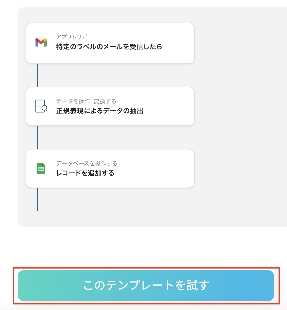 今回はGmailからGoogle スプレッドシートへデータを連携する方法をご紹介しました。 逆にGoogle スプレッドシートからGmailへのデータ連携を実施したい場合は、下記のテンプレートも併せてご利用ください。