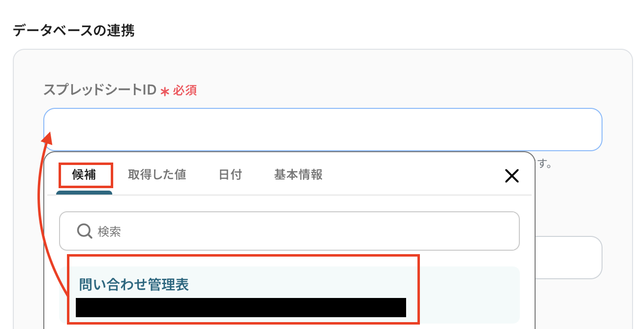 スプレッドシートIDは候補から選択します。