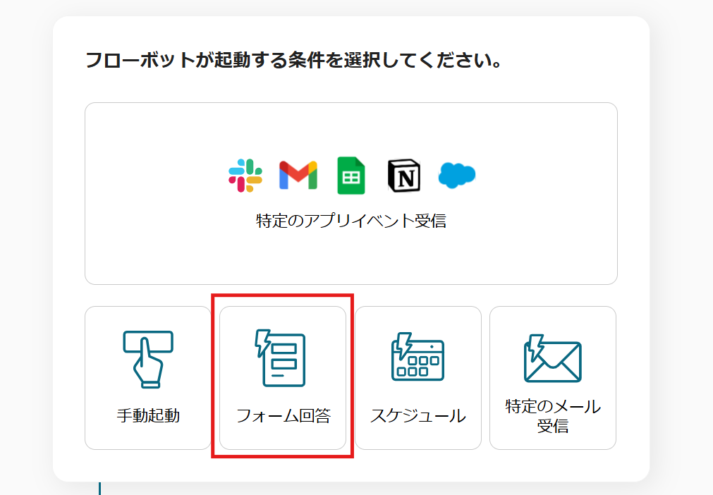 トリガーを変更し、Yoomの「フォームトリガー」を利用することができます。