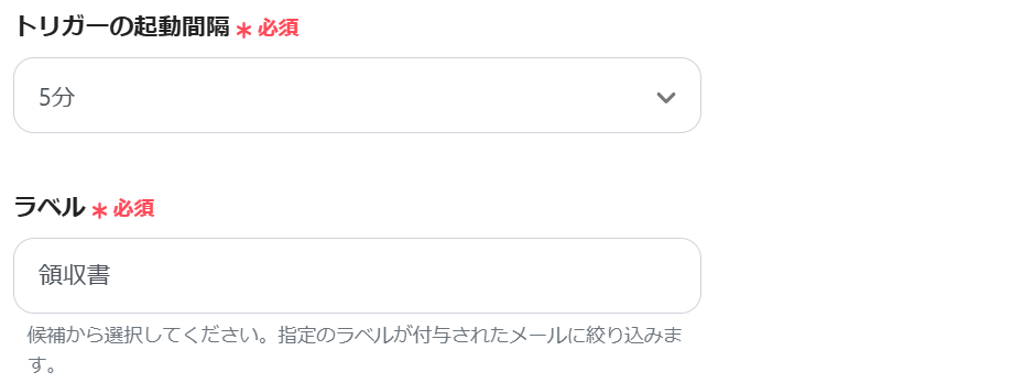 ラベルを付ける項目で新規ラベルを作成し、下記のように設定しましょう。
