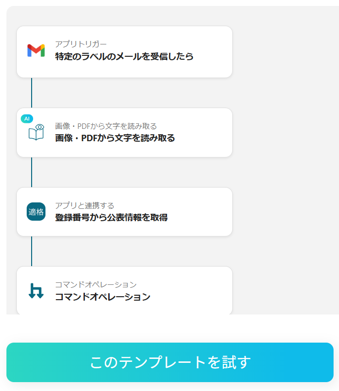 この方法は、Gmailで請求書を受信したことをGmailのAPIを利用して受け取り、適格請求書発行事業者公表システムが提供するAPIを利用し、登録番号を確認することで実現可能です。