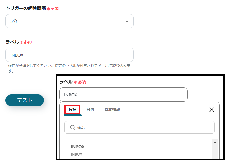 ※ラベルは、枠をクリックして表示される「候補」から設定できます。