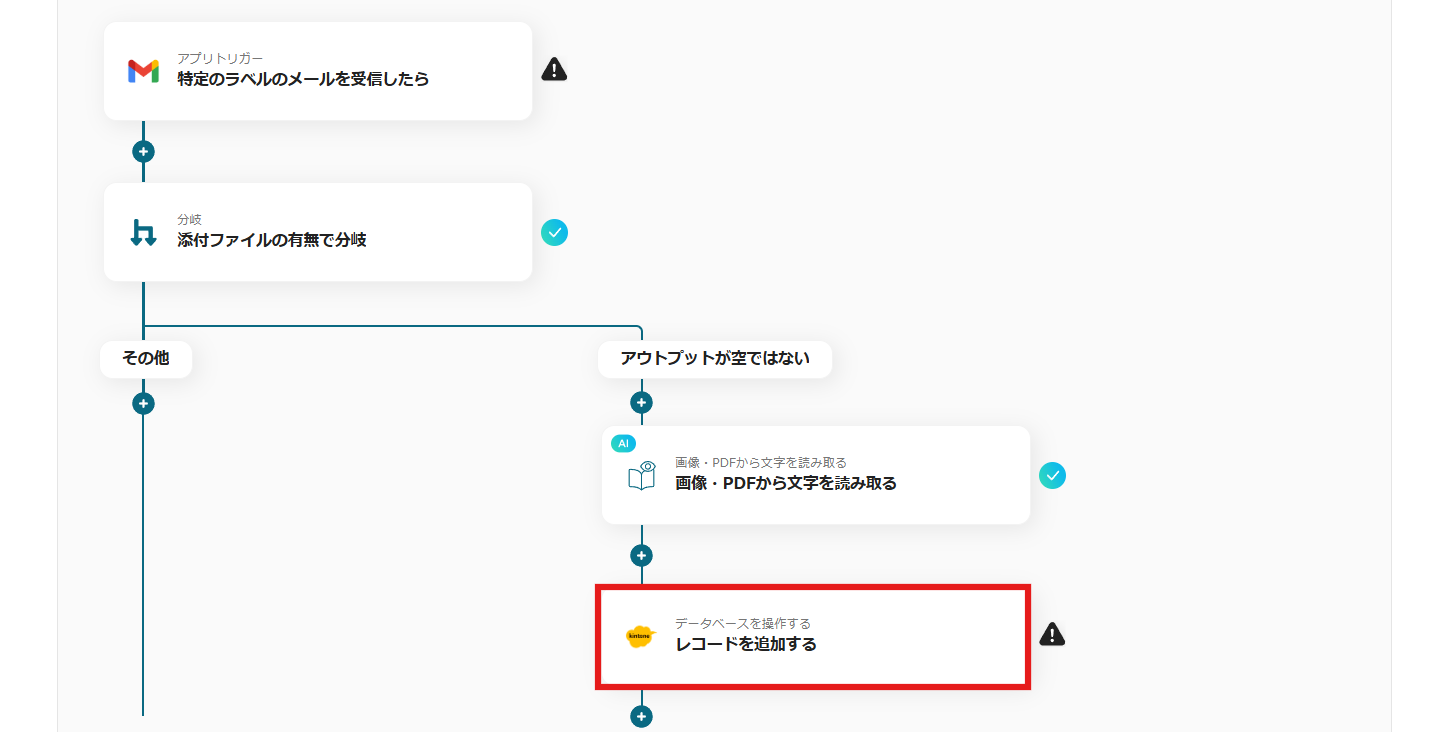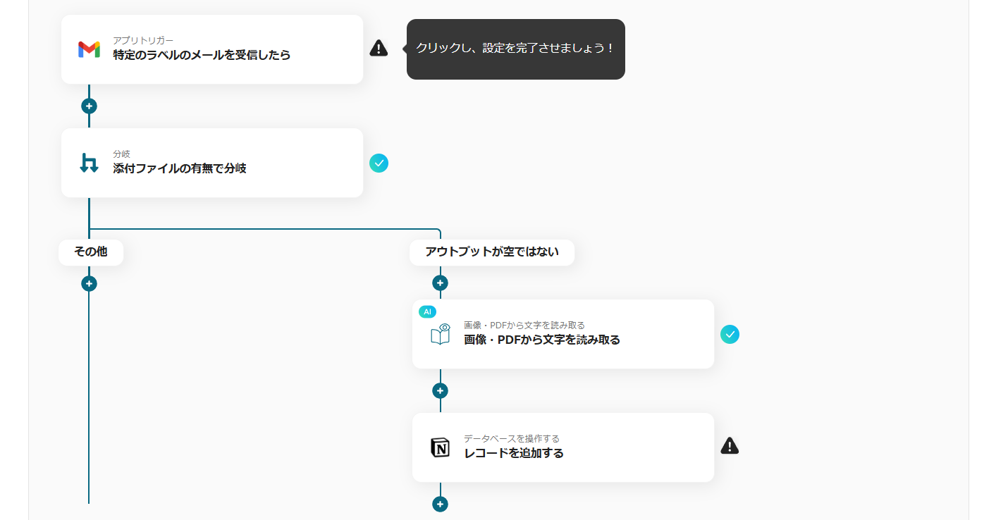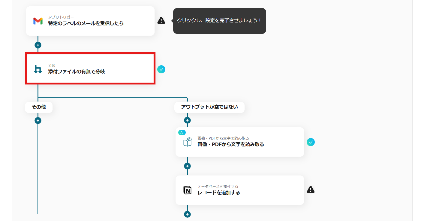 この設定は「添付ファイルがある場合のみ次のステップへ進む」というものになります。