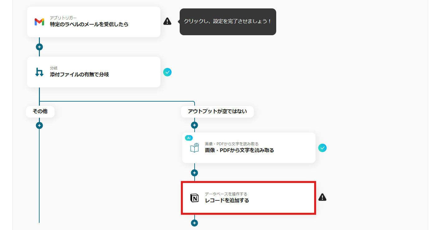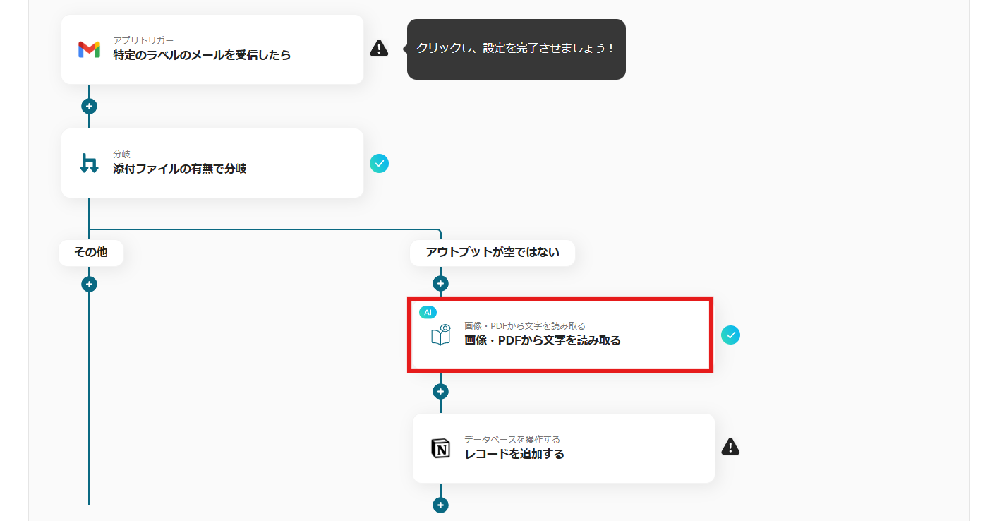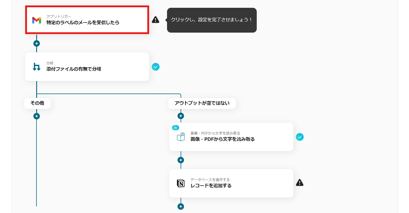 この設定は「添付ファイルがある場合のみ次のステップへ進む」というものになります。