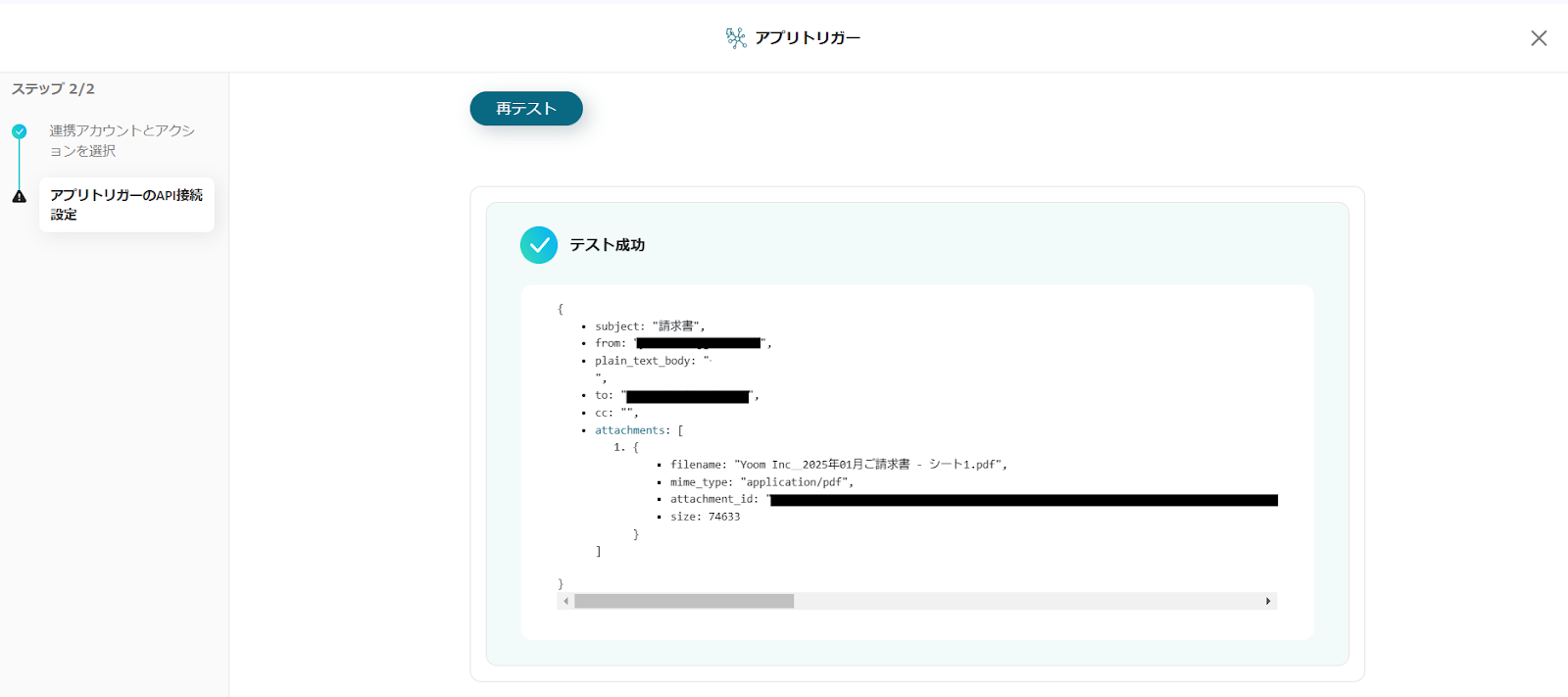 Yoomの画面に戻り、上記の表示が出たら連携完了です。