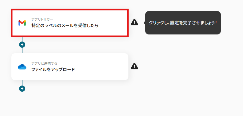 - Gmailのトリガー設定およびOneDriveのアクション設定