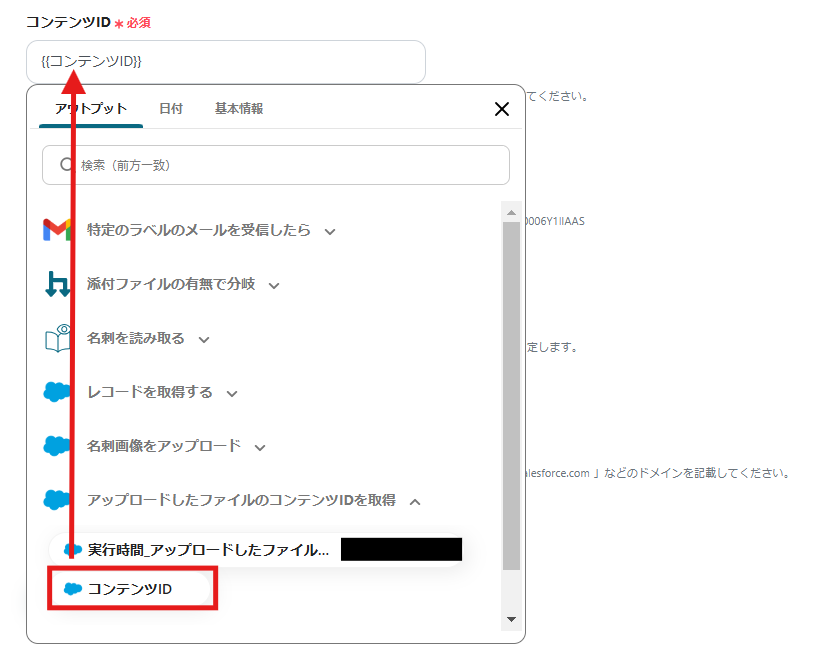 1) フローに戻り、「アプリと連携する アップロードしたコンテンツIDを取得」のアイコンをクリックします。