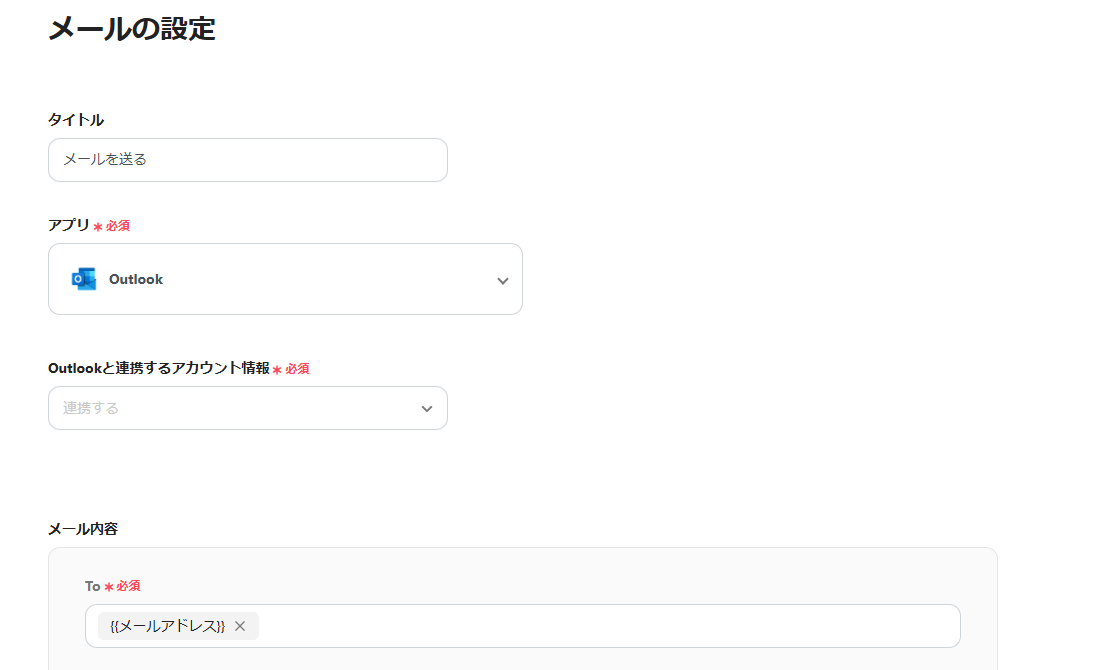 メールアドレスや本文にアウトプット情報を活用して入力できます。