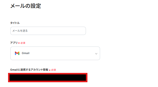メール設定が表示されるので、連携するGmailアカウントを確認します。