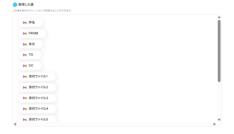 この内容も、アウトプット(取得した値)として入力に使用することが可能です。