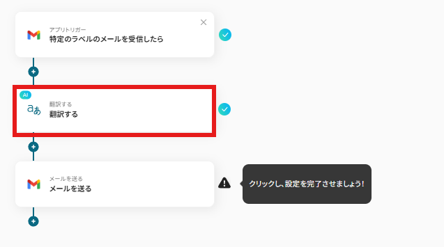 - Gmailのトリガー設定および翻訳とGmailのアクション設定
