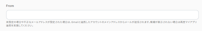 Fromは注釈の通り、未入力の場合は連携したGmailのメインアドレスになります。