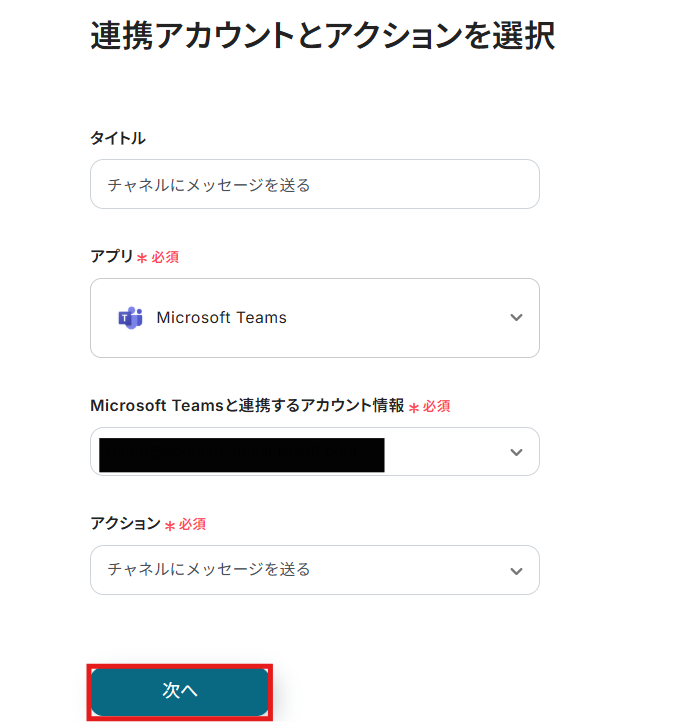 ステップ8:Microsoft Teamsのアクションを設定