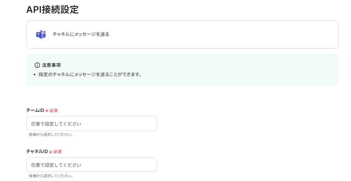 チームIDとチャネルIDは候補から選択しましょう。
