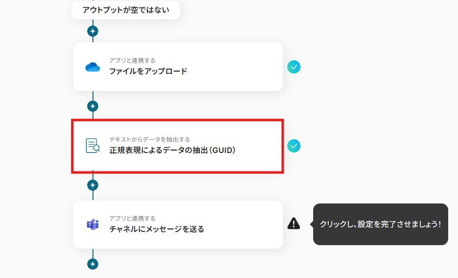 1) フローに戻り、「テキストからデータを抽出する 正規表現によるデータの抽出(GUID)」のアイコンをクリックします。