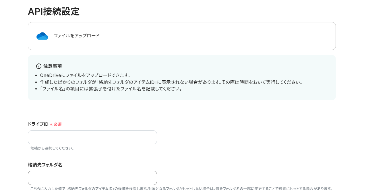 ドライブIDはボックス内をクリックすることで表示される一覧から選択可能です。