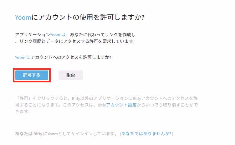 Bitlyと連携するアカウントに間違いがないかを確認し、「次へ」をクリックしましょう。