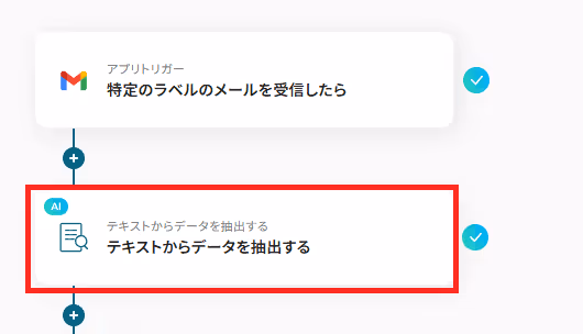 次に、メールからAIでテキストを抽出する設定を行います。この設定を行うことでメールからURLのみを抽出します。