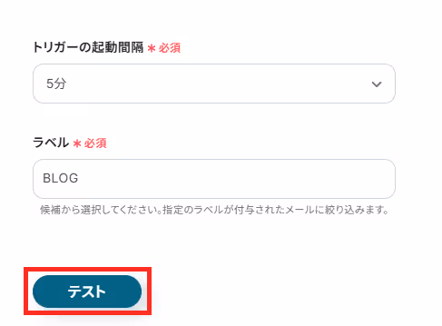 準備が完了したらYoomに戻り、テストボタンをクリックしましょう。