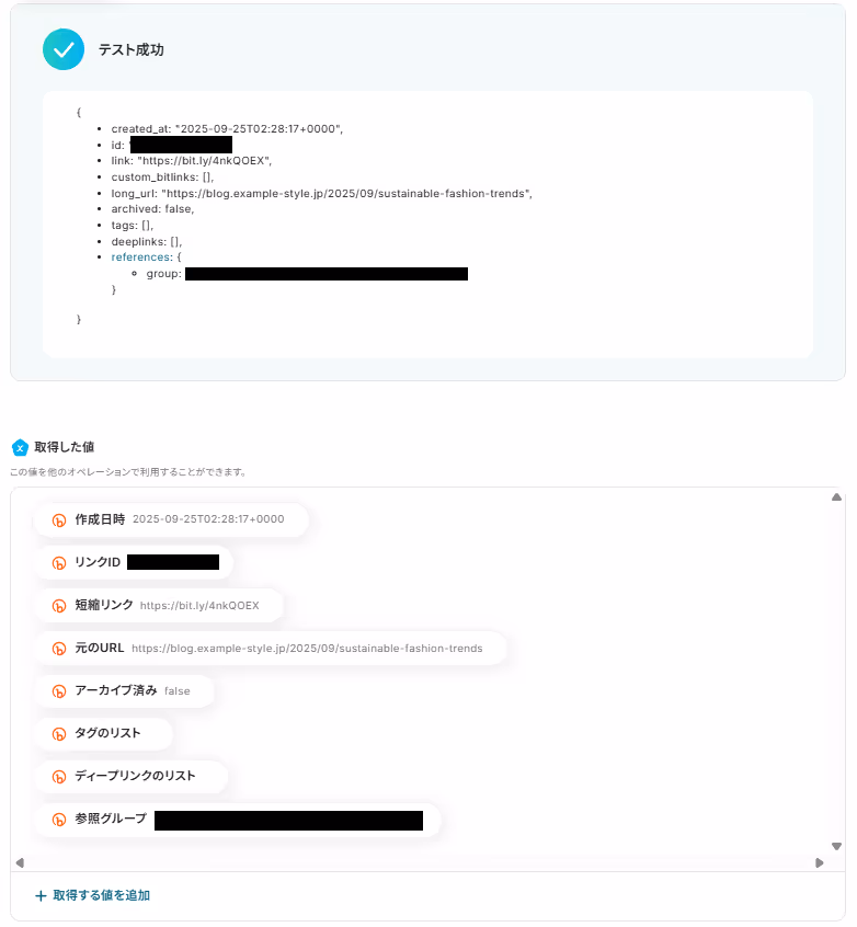 取得したURLをBitlyで短縮する設定を行います。