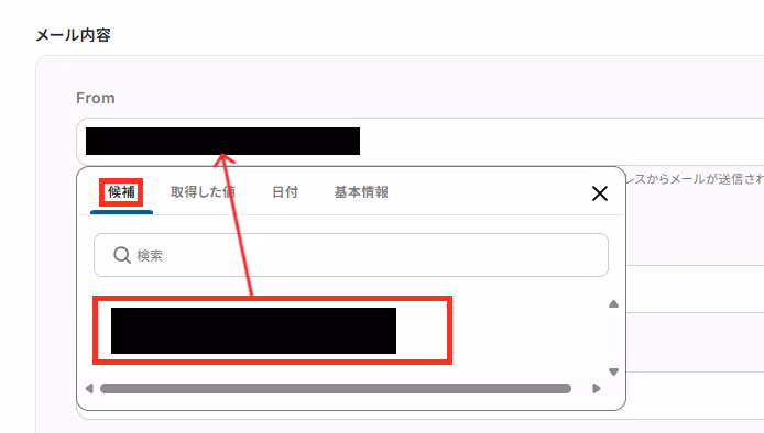 「From」は、未設定の場合や不正なメールアドレスが設定された場合、Gmailと連携したアカウントのメインアドレスからメールが送信されます。または取得した値から選ぶことも可能です。