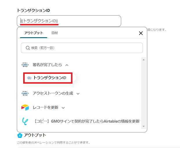 ※解説)上記のように設定することで、GMOサインの署名が完了したら、「トランザクションID」を自動で取得することができます。