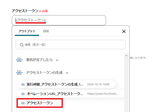 ※解説)上記のように設定することで、GMOサインの署名が完了したら、「アクセストークン」を自動で取得することができます。