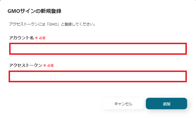 アクセストークンは「GMO」と入力して、追加をクリックしてください。