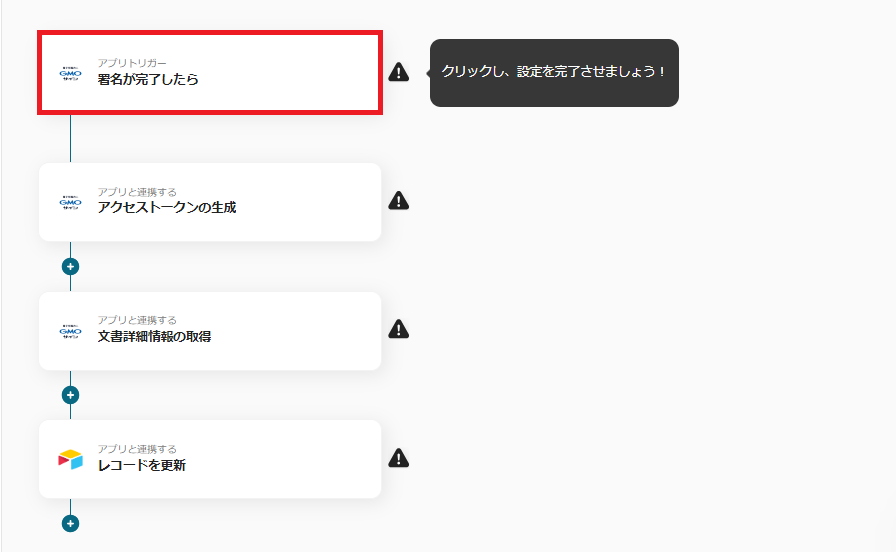 ここからはYoomでGMOサインとAirtableを連携し、「GMOサインで契約が完了したらAirtableの情報を更新する」というフローの作成手順をご紹介します。