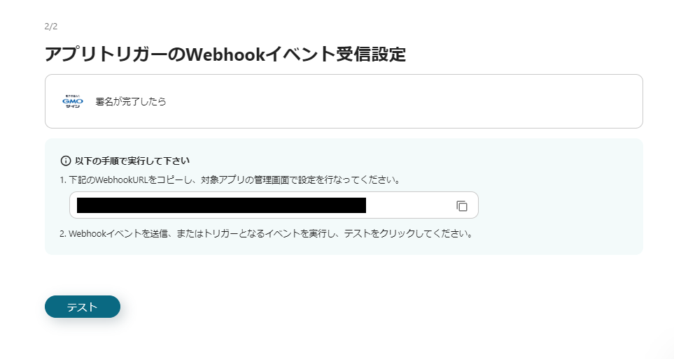 上記画面のWebhookURLをコピーし、GMOサインの管理画面に設定してください。