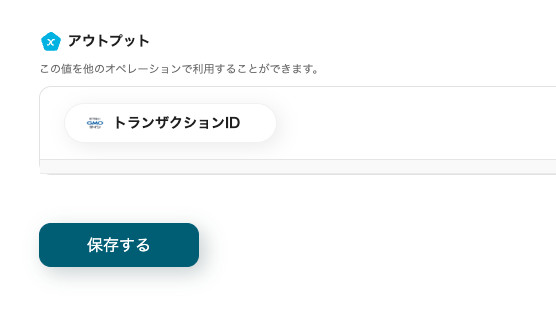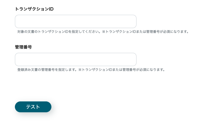 →テストをクリック →成功 トランザクションIDが取得できます。