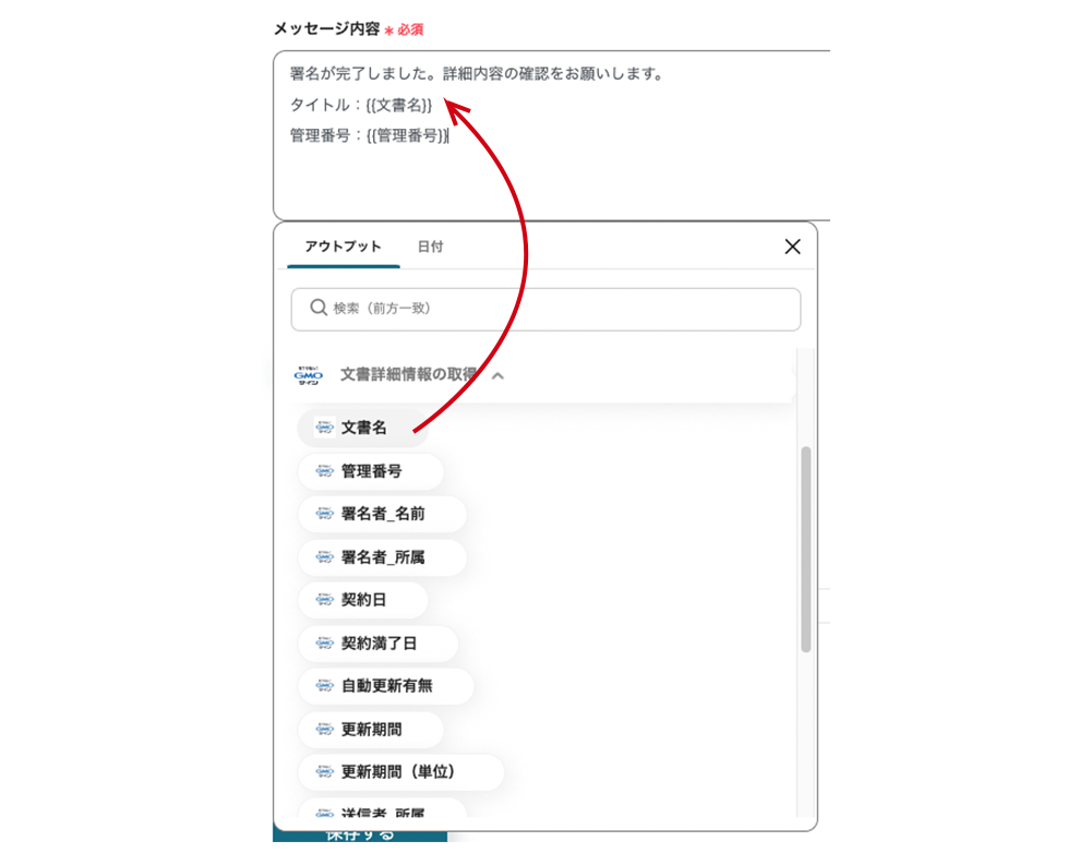 この工程でChatworkに通知する定型文を作成します。
