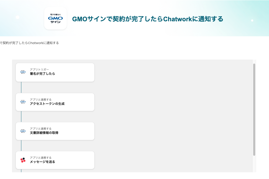 ここからは、「GMOサインで契約が完了したらChatworkに通知する」自動化の設定方法を、Yoomのフローボットテンプレートを使って解説します。