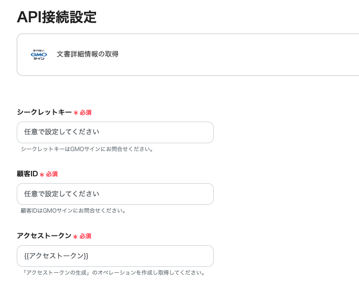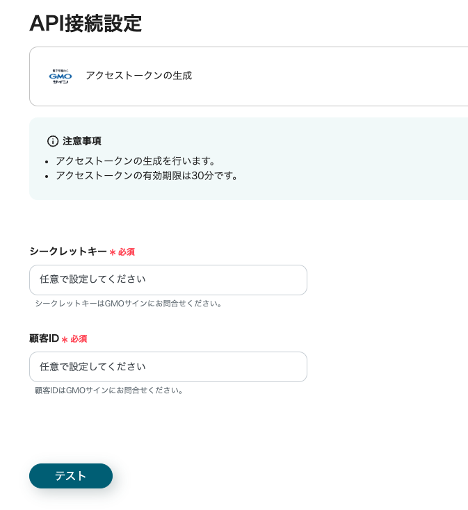 この工程ではGMOサインのアクセストークンを取得します。