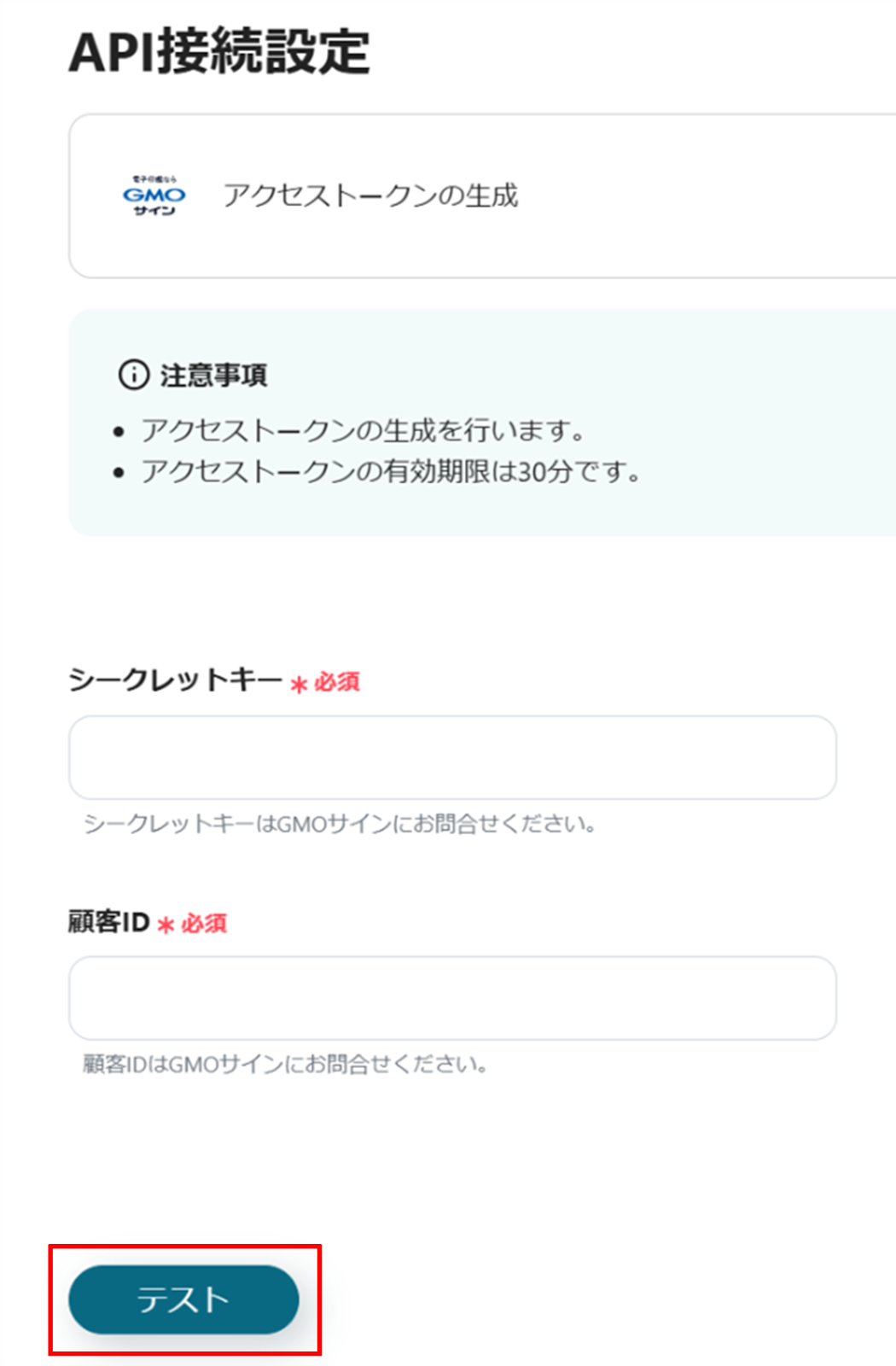 (1)次に、GMOサインと連携してアクセストークンの生成をします。