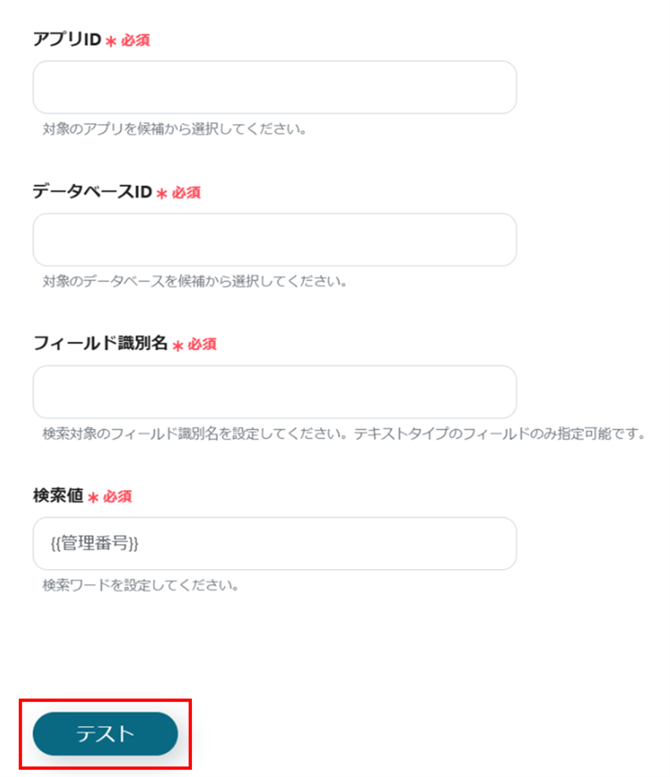 入力が完了したら、「テスト」をクリックし、エラーが発生しなければ、「保存する」をクリックします。
