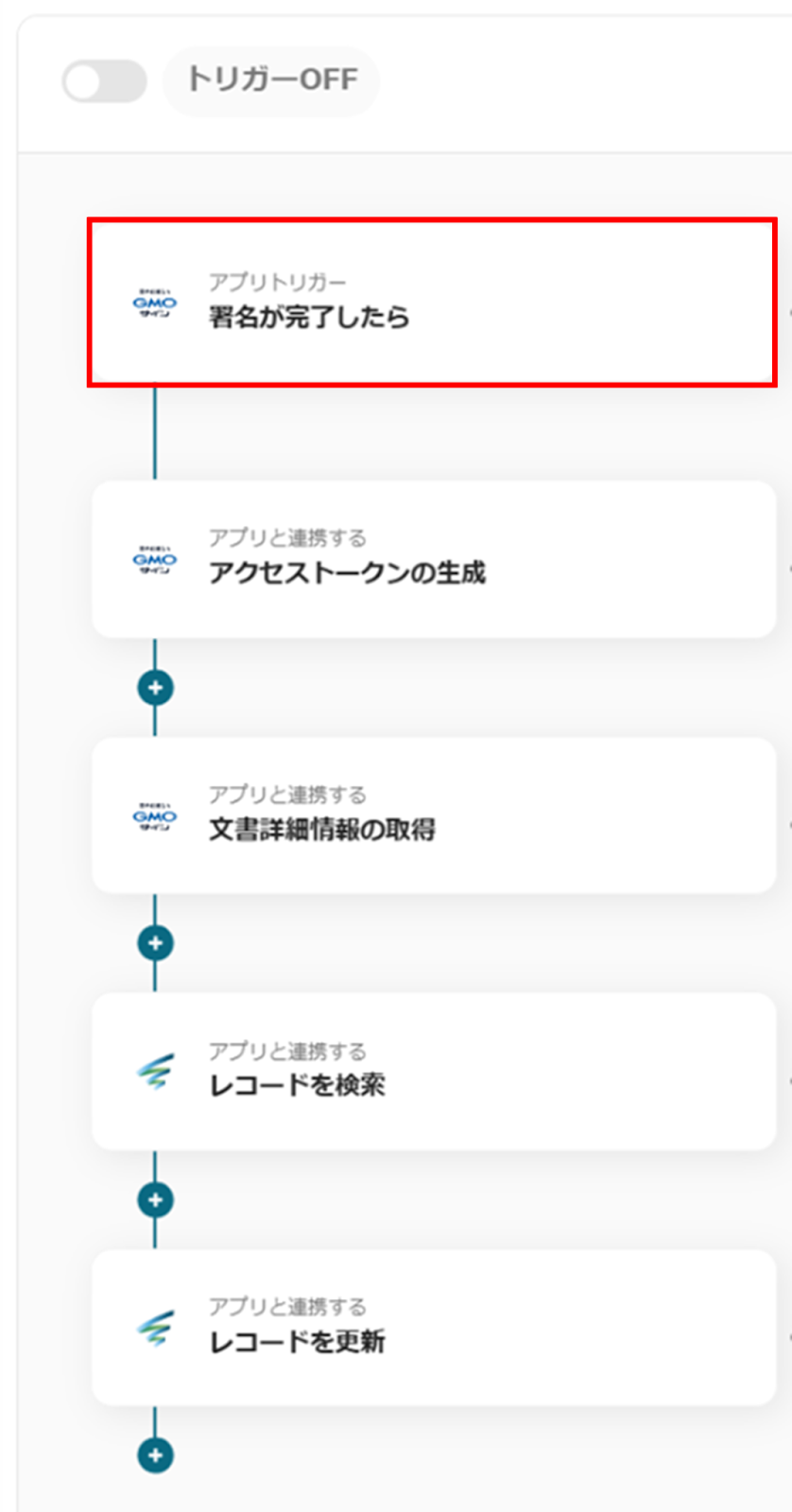 それでは、実際にテンプレートを使用して「GMOサインで契約が完了したらSPIRALの情報を更新する」フローを一緒に作っていきましょう!