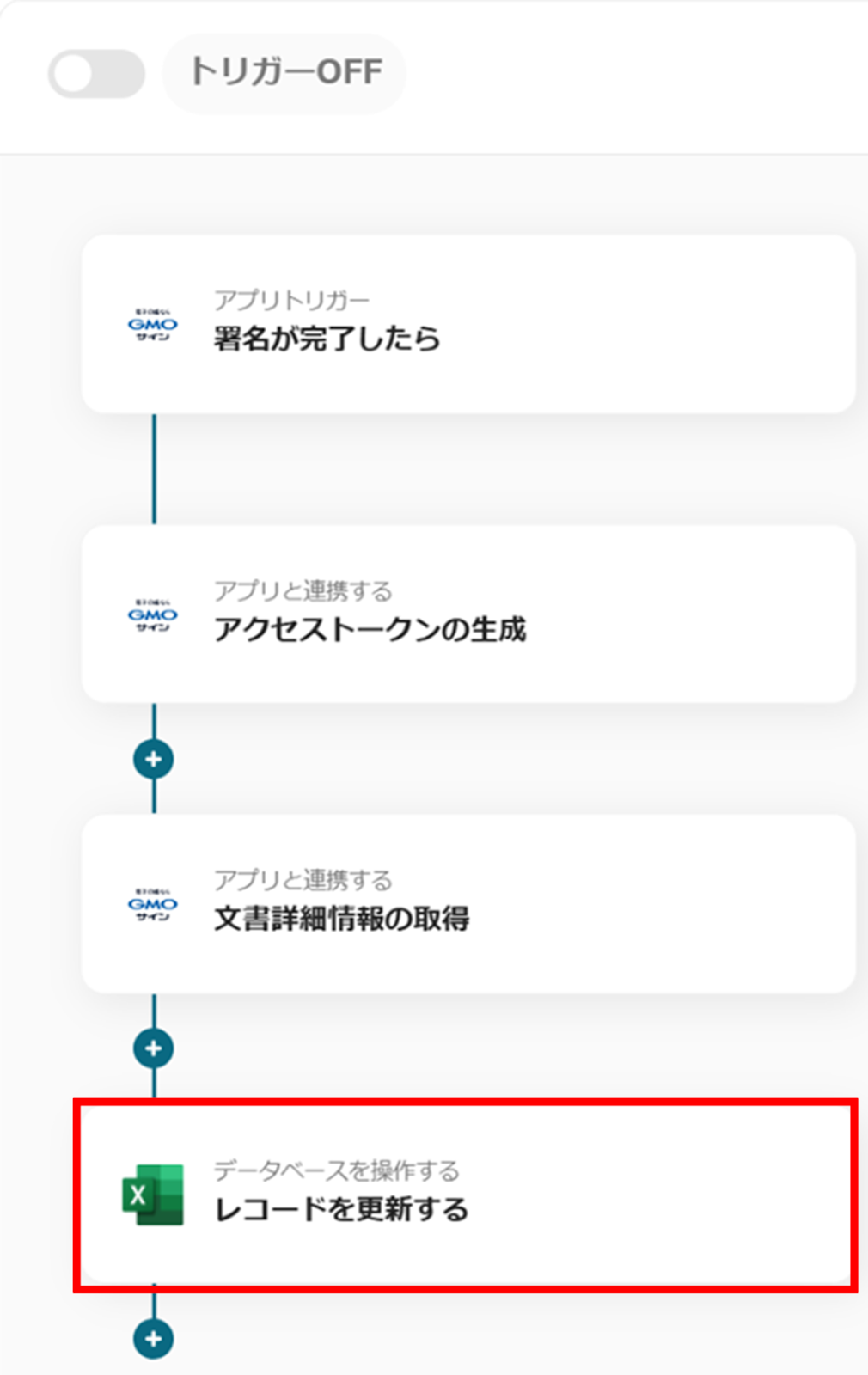 これで、「GMOサインで契約が完了したらMicrosoft Excelの情報を更新する」フローボットの完成です。