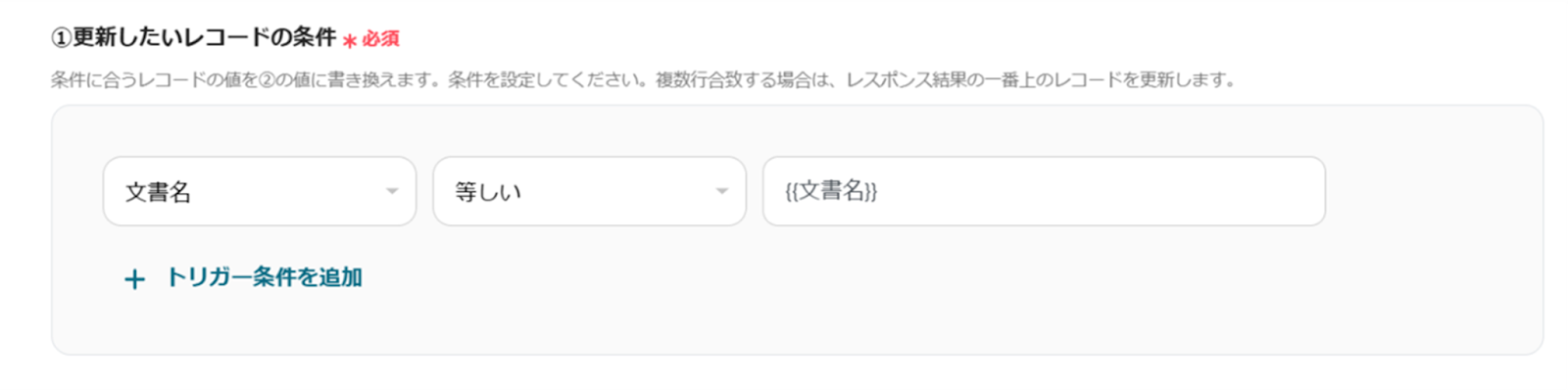 (3)「データベース操作の詳細設定」画面から、①更新したいレコード条件を入力します。