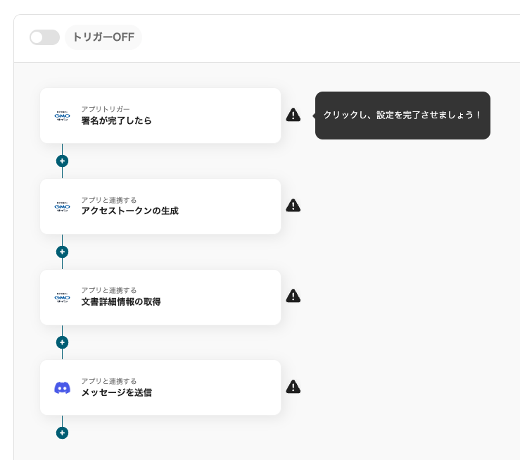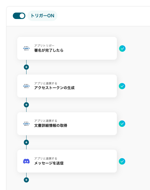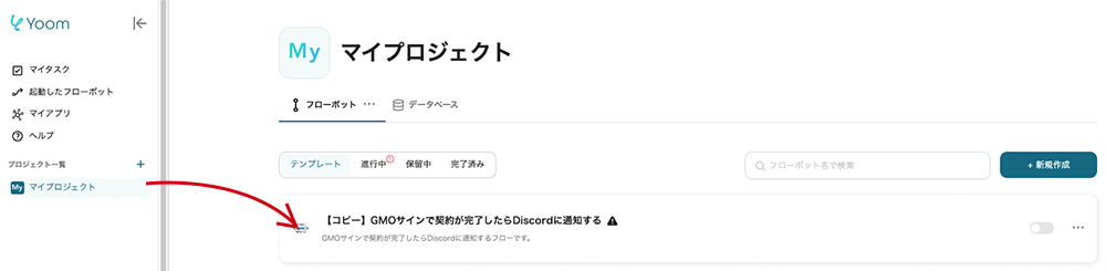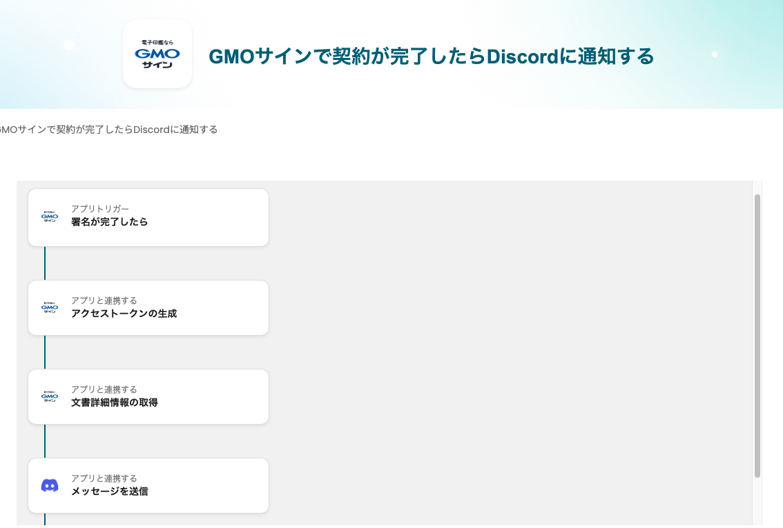 ここからは、「GMOサインで契約が完了したらDiscordに通知する」自動化の設定方法を、Yoomのフローボットテンプレートを使って解説します。