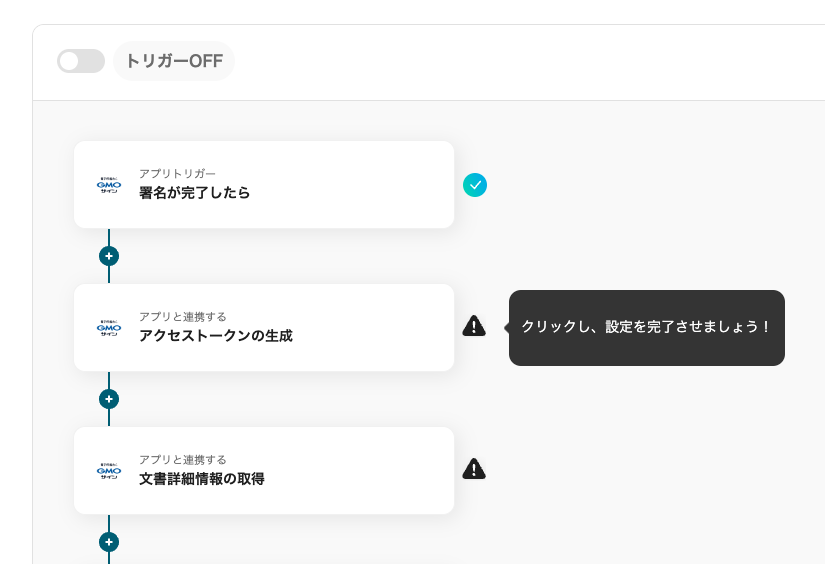GMOサインでのイベント(署名の完了)をトリガーにするため、Webhookの設定を行います。
