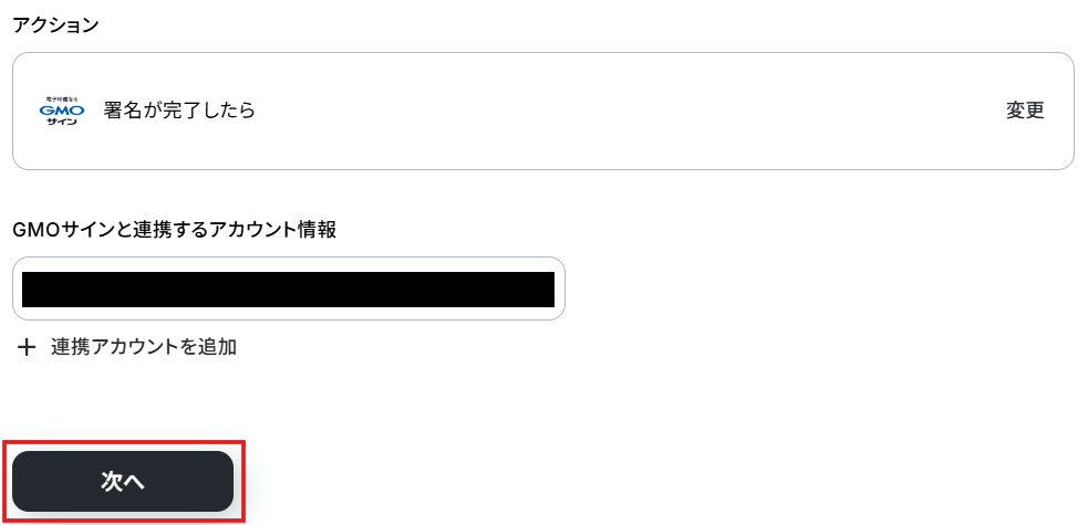 初めにGMOサインの設定から行うので、「署名が完了したら」をクリックします。