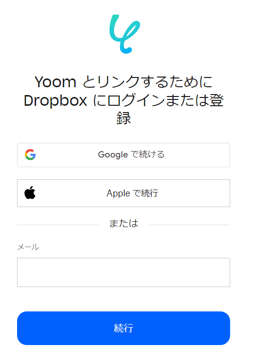 以下の画面に移行するので、Dropboxにログインしましょう。