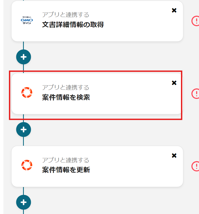 13)フローに戻ったら、「アプリと連携する 案件情報の検索」のアイコンをクリックします。