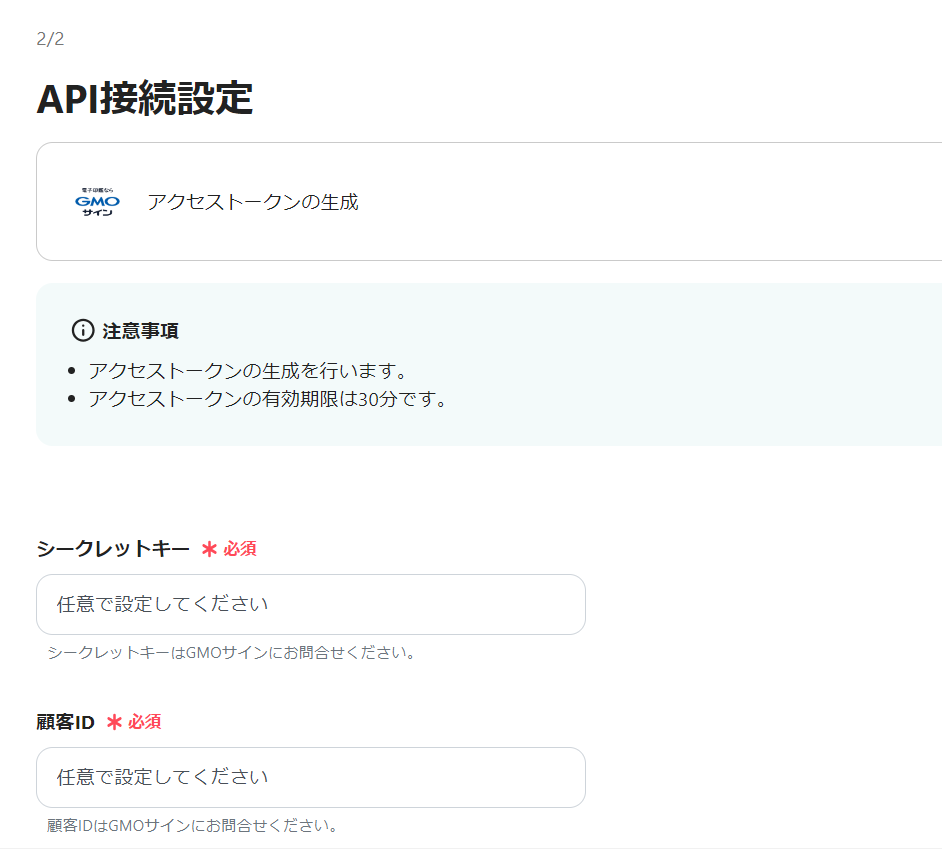 9)シークレットキー、顧客IDはGMOサインにお問合せください。