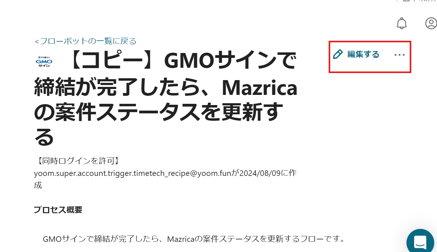今回は、【GMOサインで締結が完了したら、Mazricaの案件ステータスを更新する】というフローを作成します。