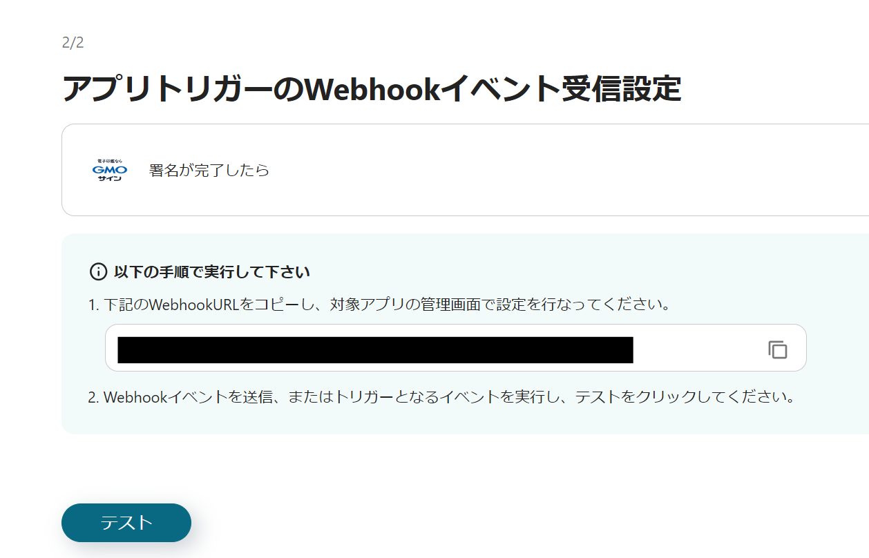 5)WebhookURLをコピーし、対象アプリの管理画面で設定を行なってください。