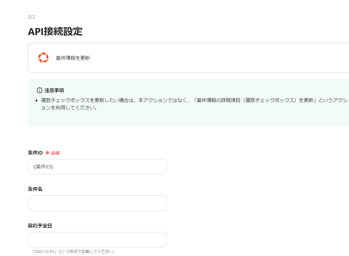 必要に応じて、先に連携したアウトプット情報を選択しながら入力します。