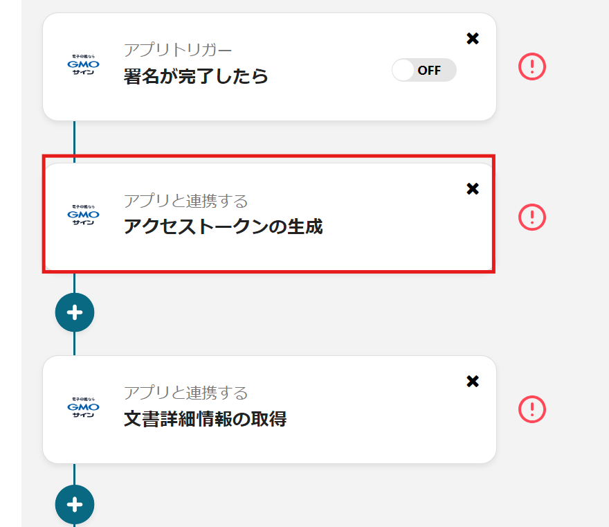 6)フローに戻ったら、「アプリと連携する アクセストークンの生成」のアイコンをクリックします。