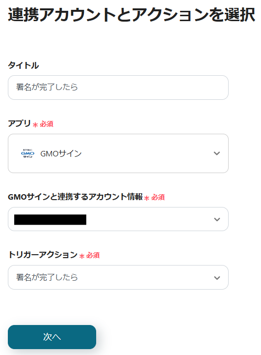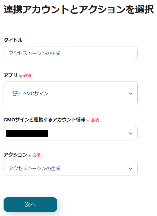 3.GMOサインと連携するアカウントを確認し、「次へ」をクリックします。